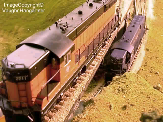 Minnekeeta County Post. Official abandonment and removal of the railroad starts today. Dead Lake Township. May 16 1974. Today marked the end of an era as the Milwaukee Road officially started removal of the former Lakefield & Tallow and its own secondary main through town. The L&TRR was a mainly wood and mining narrow gauge line established in 1899, it was next bought by the Milwaukee Road in 1913 and converted that summer to standard gauge. In 1952 the Jacob Sennonson Mining company closed its mine in nearby Minnekeeta and a few years later in 1965 the Dead Lake lumber company switched to using trucks. Afterwards only a few remaining small customers remained, most of which were grain. In 1968 the railroad moved to abandon the line and tried to cease operations, a move that was reversed a few weeks later. The Milwaukee, itself hit hard by declining traffic found the line that rounds our fine town to be a loosing proposition and again officially filed for its abandonment in 1969. By last summer the Chicago, Milwaukee, Saint Paul and Pacific Railroad gained approval from the ICC to formalize abandonment. Last week was a frenzy of activity as remaining customers made sure that no railroad cars remained on their spurs. The railroad itself spent the week cleaning up the 'right of way'. Oddly, as of this writing there are 3 locomotives gently idling either in the yard or the diminutive old station on Second and Washington St., more than have been seen here at one time for over a decade according to the Milwaukee Road employee, Richard Manning. He said the engines, one EMD GP-9, one ALCo RS3 and one EMD SD-9 with a crane and cabboose would be here only a short time as they wouldn't all be needed for the final work train. When asked about railroad buildings in town he didn't know what would be done with them, but odds were they'd either be torn down or sold off. The town counsel as of yet doesn't have any plans for purchasing although they did say two inquiries as to the disposition of the depot have been fielded. Local residents were mostly indifferent, however one person said he will miss the occasional train whistle. Local fishermen also will loose the rather grand iron lacework bridge that crosses Minnekeeta Creek to the west of town which was part of the L&TRR. When asked why this bridge would be removed and the others left, Richard Manning supposed it was due to it's old age and that the railroad didn't want the possible legal risk even though the line was officially abandoned. The two other Milwaukee bridges of steel girder and plank design will remain sans their rails once the scrapping has passed.
